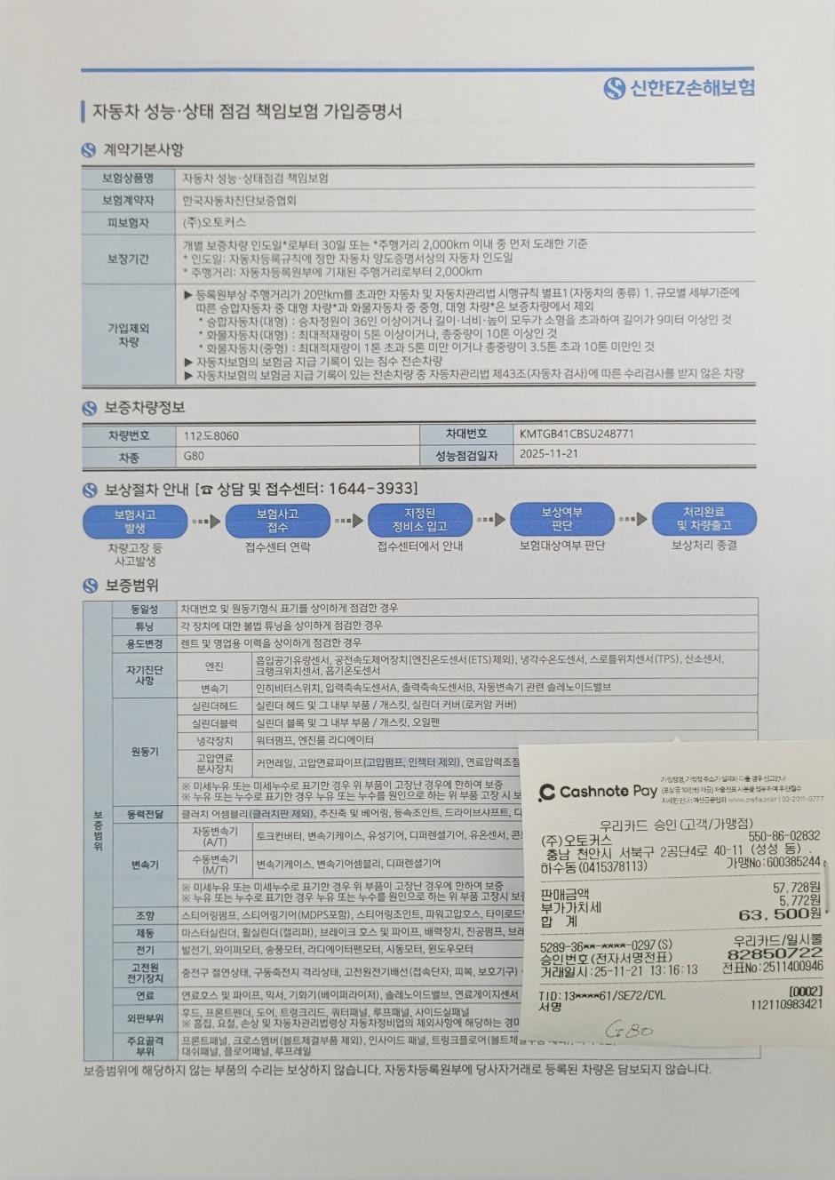 ▶자동차 성능.상태 점검 책임보험 가입증명서