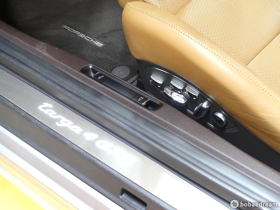 GTS 로고는 차량 존재감을 더욱 부각시킨다. 또한 GTS 모델 최초로 블랙컬러로 제공되는 타르가 바는