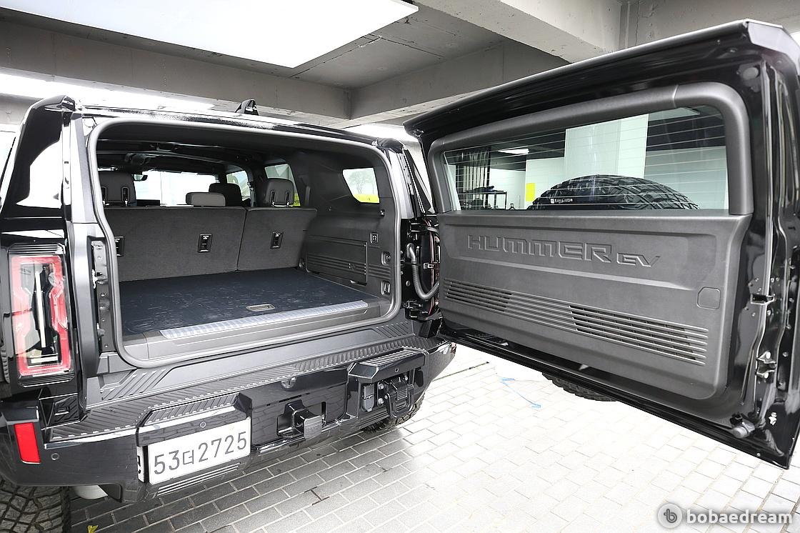 허머 EV SUV는 전면부가 앞서 공개된 허머 전기 픽업트럭과 동일하다. 반면 후면부는 트럭 베드가 사라지고