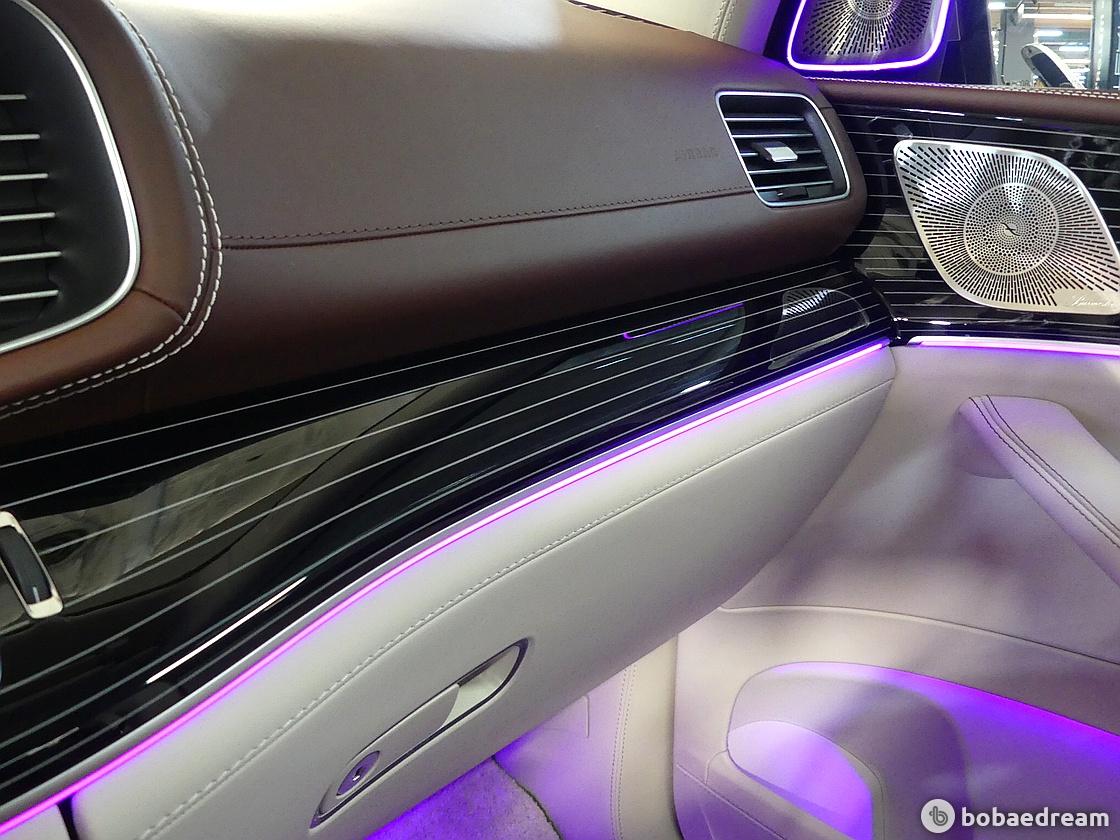 엠블럼은 메르세데스-마이바흐로서의 정체성을 강조한다. 최상급 소재와 효율성을 극대화시킨 소음 차단 기술이