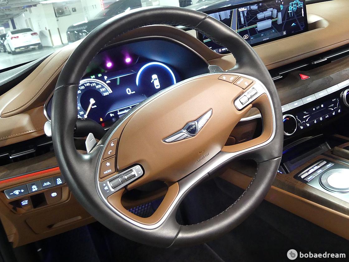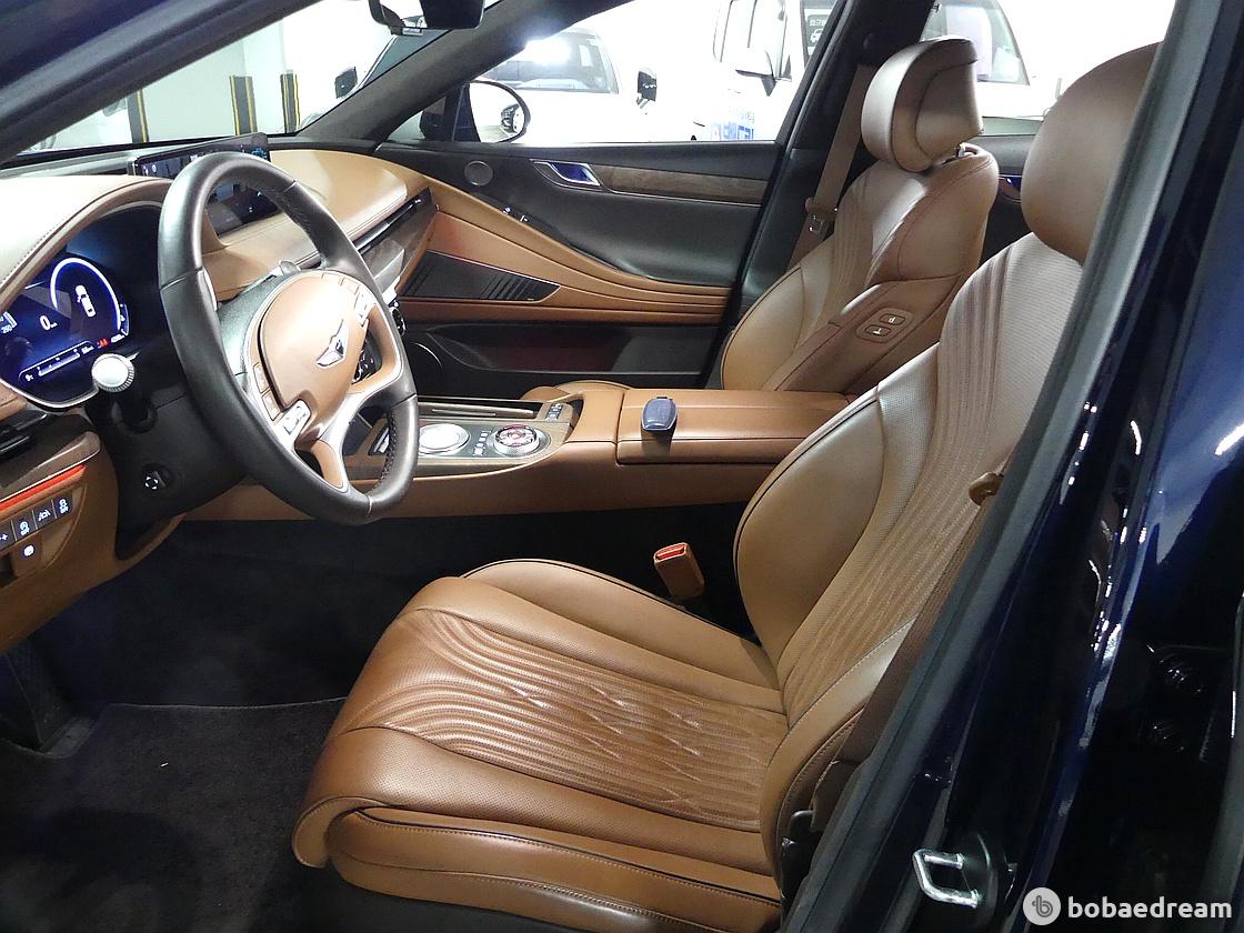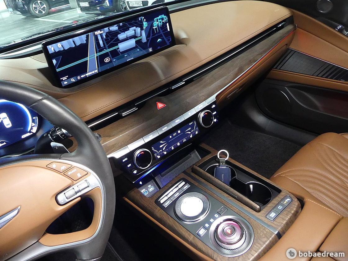 신형 G80의 실내는 여유로운 개인 공간을 조성하는 데에 힘썼다. 조작계 등의 배치를 운전자에 최적화한 것도