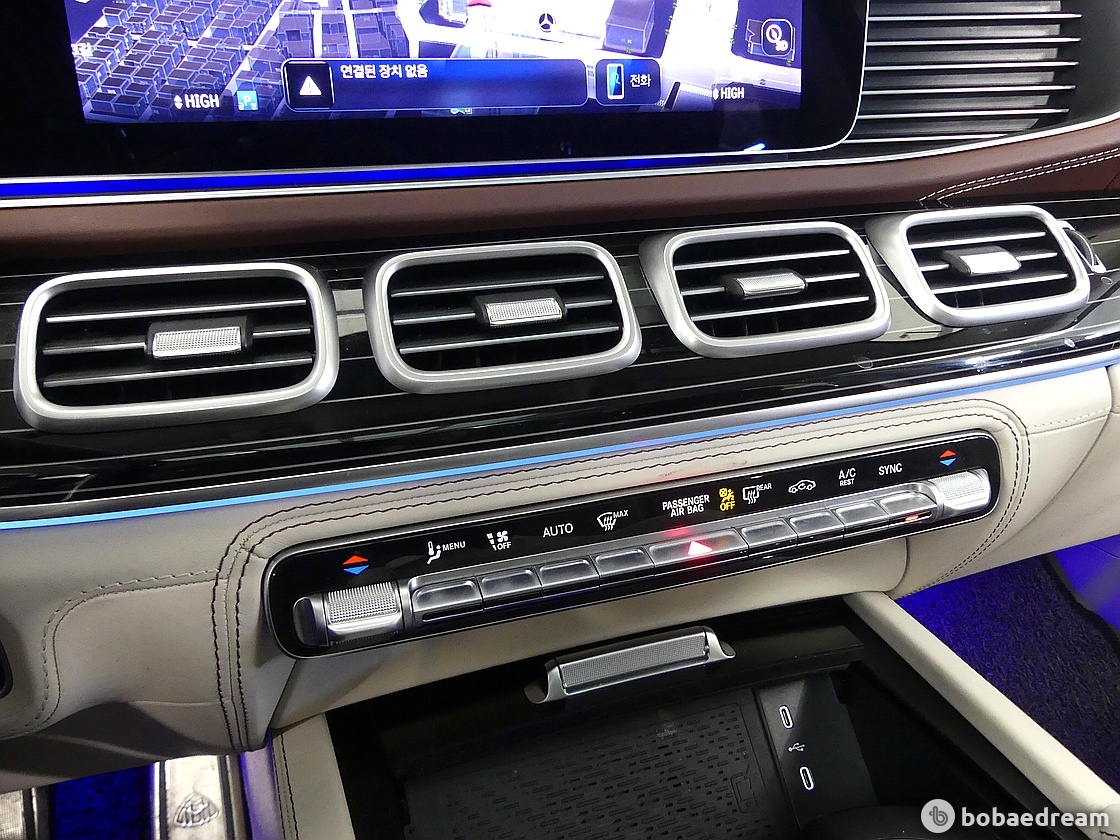 센터 콘솔의 기본 MBUX 후방 태블릿(MBUX Rear Tablet)이나 뒷좌석 사이의 팔걸이를 통해 뒷좌석에서도