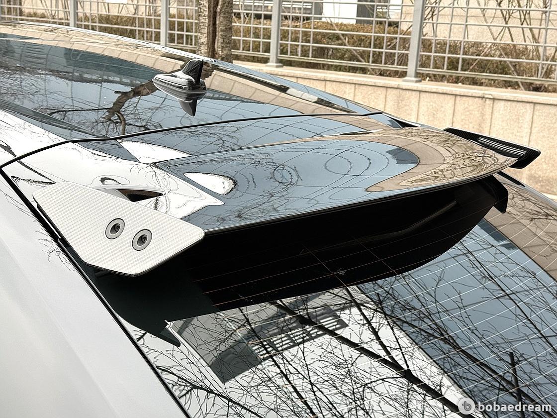 한 디자인이 특징이다. 리어 스포일러에는 아벤타도르 SVJ(Aventador SVJ)에서 영감을 받은 탄소섬유 핀이