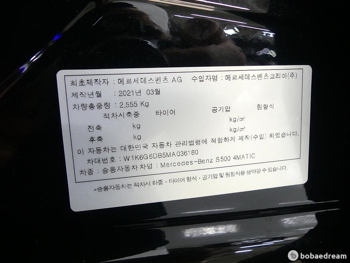 2021년 10월식 벤츠 S500L 4매틱 모델을 판매합니다. 》정식출고/무사고차량임을 강조