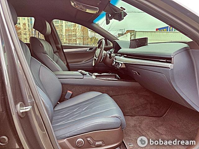 신형 G80의 실내는 여유로운 개인 공간을 조성하는 데에 힘썼다. 조작계 등의 배치를 운전자에 최적화한 것도