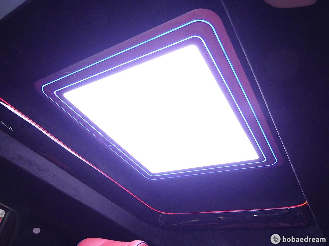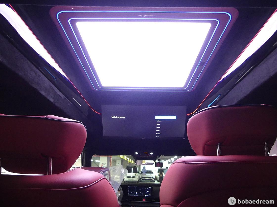 라이팅을 배치해 고급감을 높이고 라운지와 같은 분위기를 나타낸다. 실내 공간은 3열로 이뤄져 광활하다.