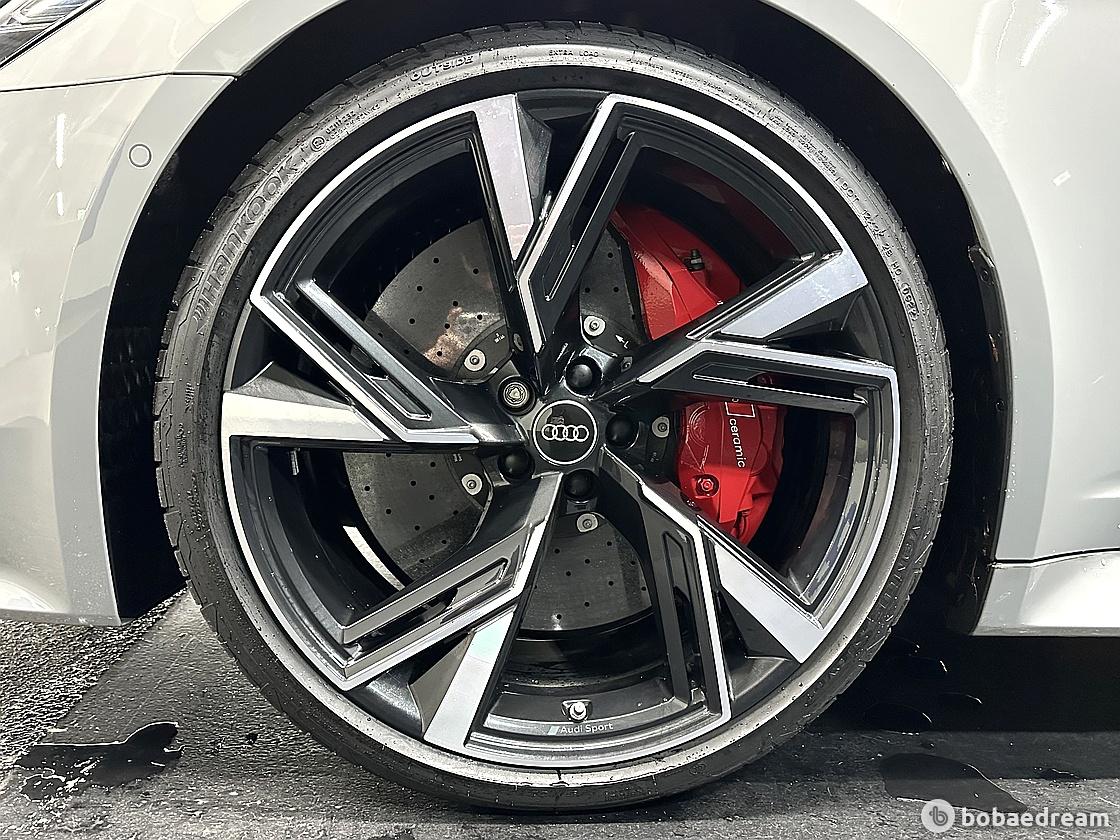 채택했으며 22인치 5 V 스포크 트래퍼조이드 스타일 휠과 세라믹 브레이크 및 레드 캘리퍼를 장착해 RS