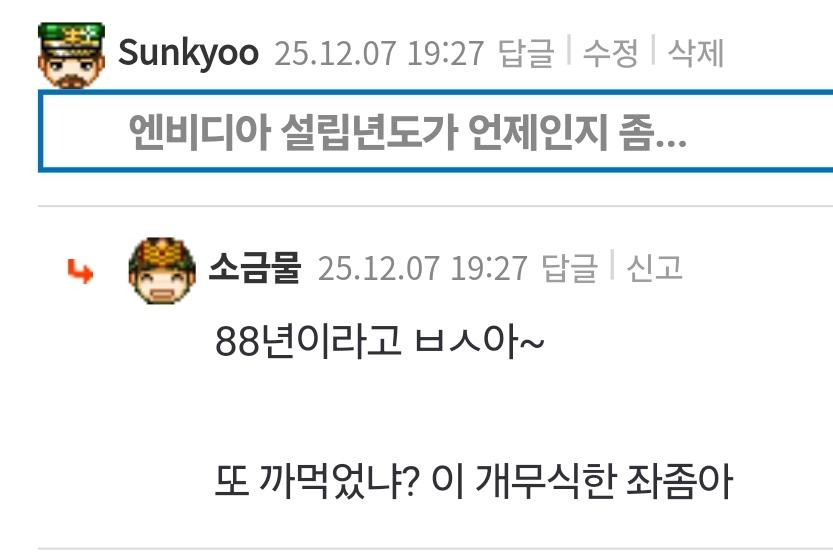 그리고 엔비디아 93년 설립이라니까 왜 인수 합병 모르냐고 욕함?