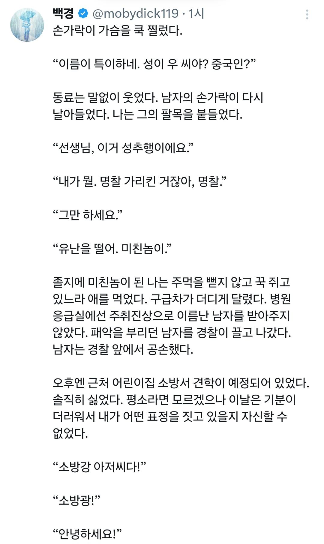 어떤 개새끼가 119대원들에게 처리하라고 했는지 모르지만