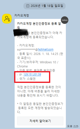 카카X 접근 메세지라고 스팸인줄 알고 있는데 로그인이 되었다?! 나오길래 무엇인고?이건?