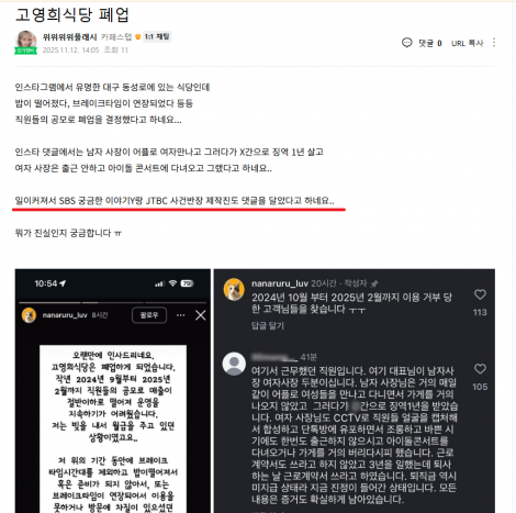 그러자 전 직원이였던 사람이 댓글 남김
